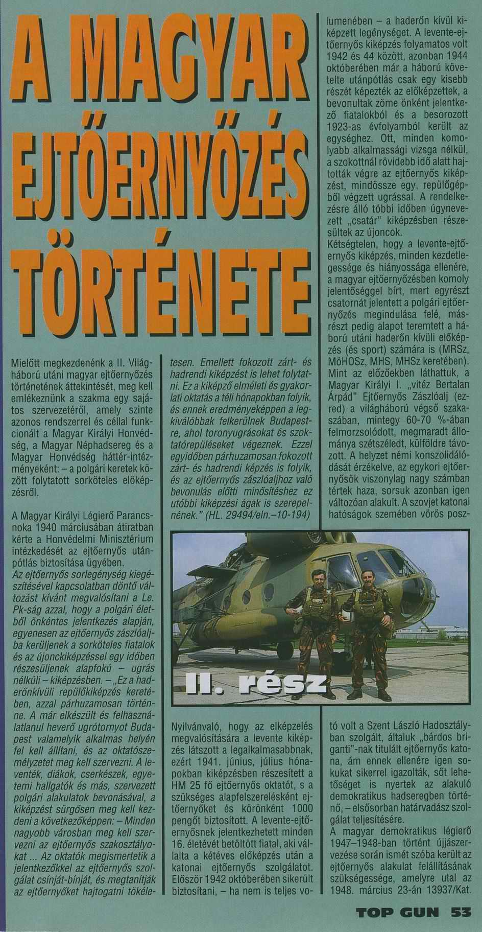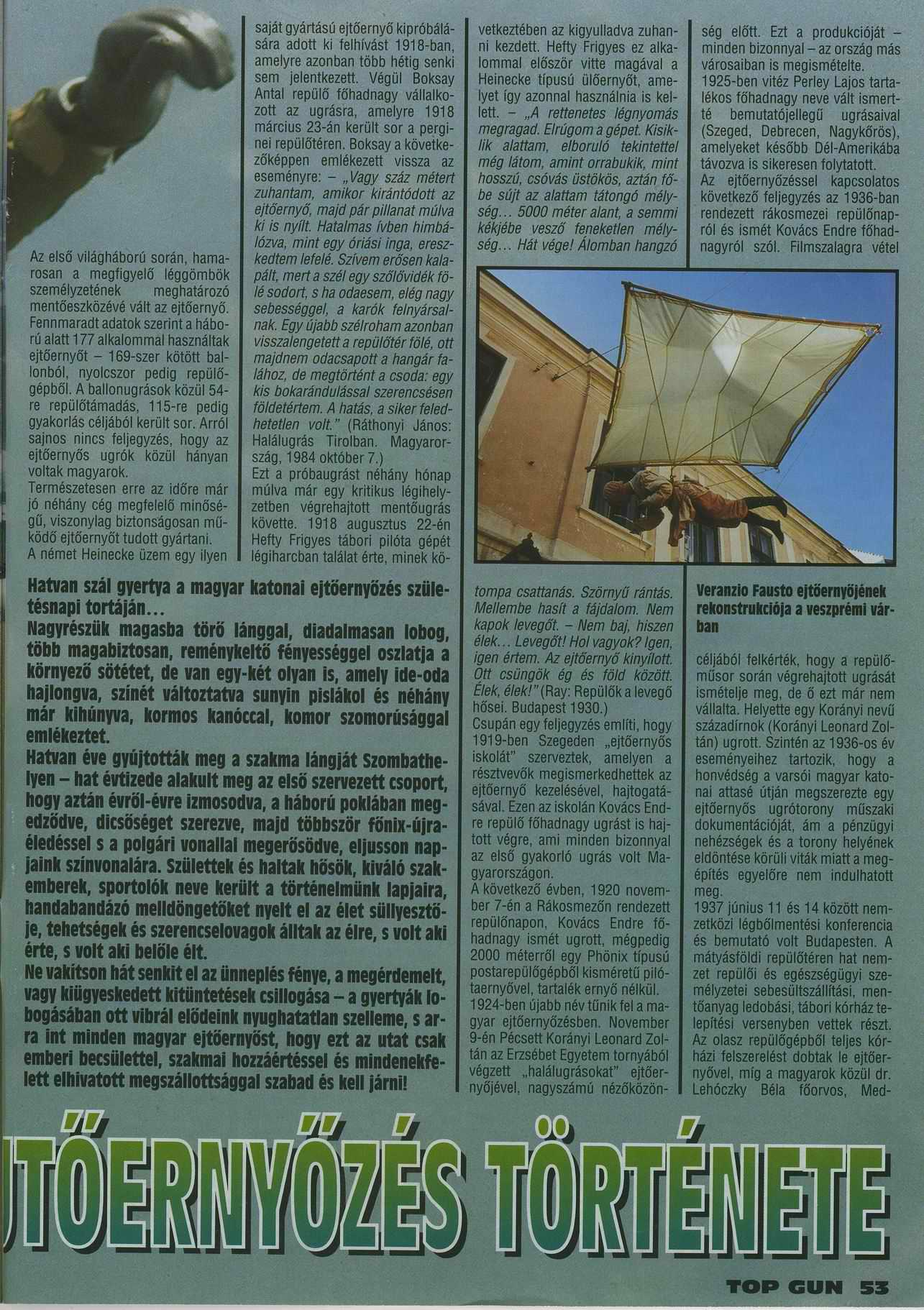 A Magyar Ejtőernyőzés Története